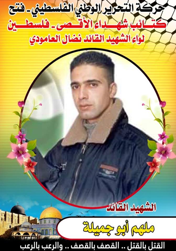 فإننا اليوم في كتائب شهداء الأقصى – فلسطين لواء الشهيد القائد " نضال العامودي "،نبرق بتحية إجلال وإكبار لروح الشهيد القائد المجاهد الذي أذاق الإحتلال وجنوده الويلات في كافة مدن الضفة الغربية المحتلة ، التي ودعت في ذلك اليوم القائد المجاهد، " ملهم أبو جميلة "الذي نستذكره اليوم بكل آيات الوفاء في ذكرى إستشهاده التي ستبقى نبراساً يضيئ لنا طريقنا النضالي المعبد بالظلام الدامس .