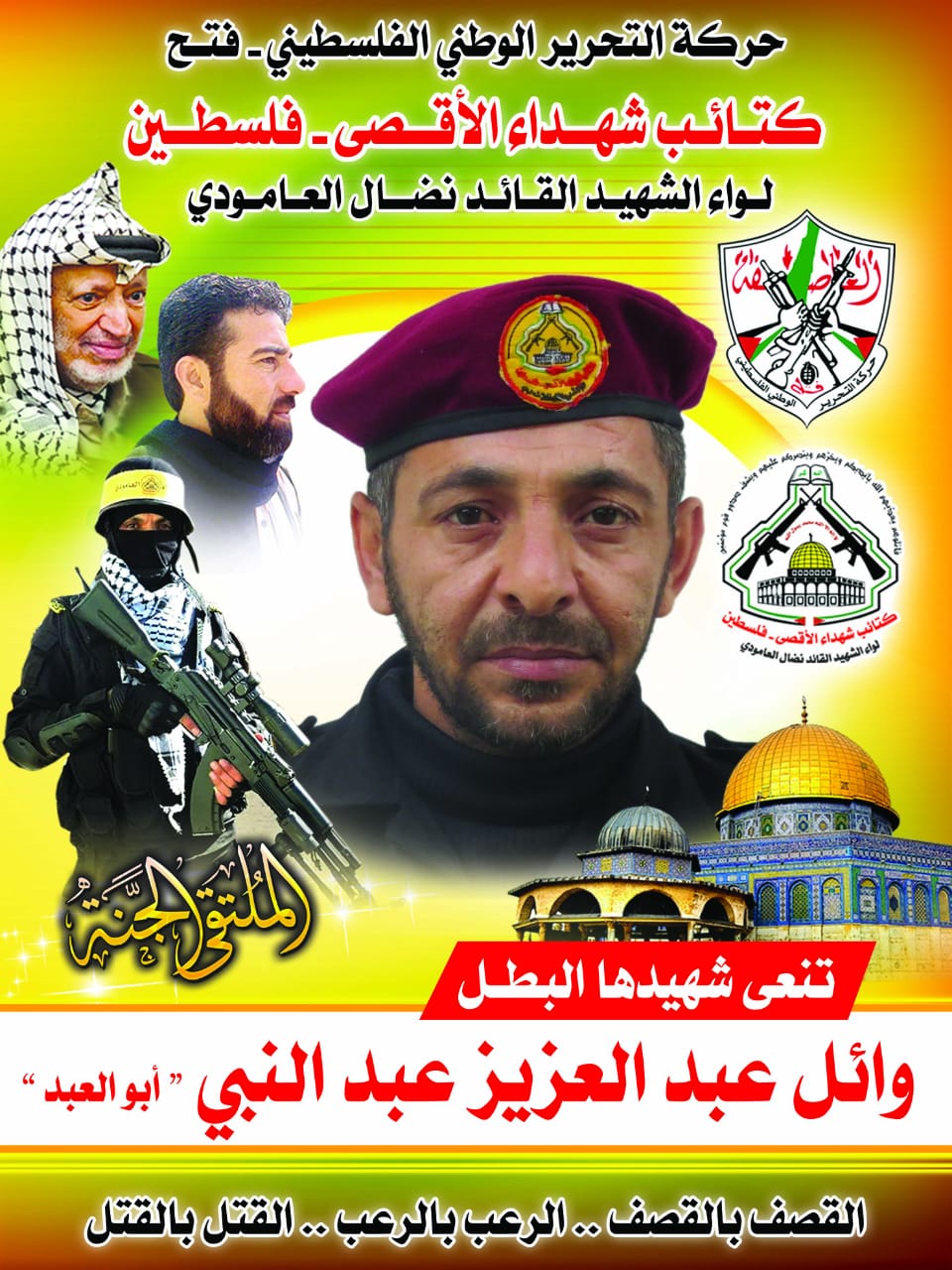بكل فخر واعتزاز تزف كتائب شهداء الأقصى - لواء الشهيد القائد نضال العامودي، ثلاثة من مقاتليها ابطال الوحدة الصاروخية   الذين ارتقوا في قصفٍ صهيوني جبان استهدفهم في شمال قطاع غزة، أثناء تأدية واجبهم الوطني وعهداً ان نبقي الاوفياء لدماء شهدائنا المغاوير وهم :