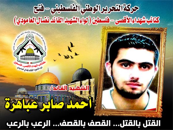 الشهيد " أحمد صابر الحاج محمود عباهره " من بلدة اليامون _ جنين أحد أبرز قادة كتائب شهداء الاقصى فى الضفة الغربية المحتلة ,ولد بتاريخ 30.5.1985م .