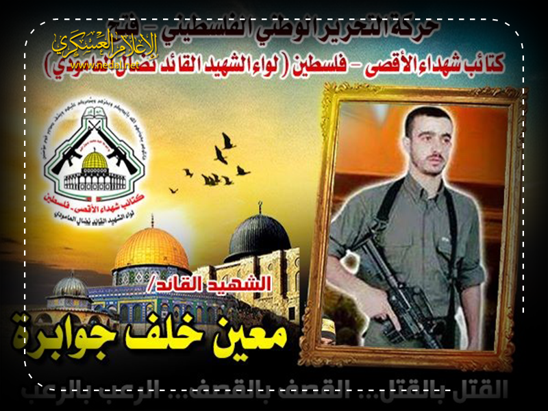 فإننا اليوم في كتائب شهداء الأقصى - فلسطين لــواء الشهيد القائد " نضال العامودي " نحيي ذكرى إستشهاد القائد، معين جوابرة وننحني إجلالاً وإكباراً لروحه الطاهرة في ذكرى إستشهاده التي ستبقى خالدة في قلوب كل الشرفاء من أبناء شعبه المجاهد.