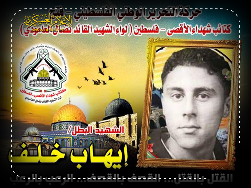 فإننا اليوم في كتائب شهداء الاقصى - فلسطين لواء الشهيد القائد " نضال العامودي " ،ننحني إجلالاً وإكباراً لروح شهيدنا إيهاب خلف ، معاهدين الله عز وجل بالمضي قدماً على طريقه النضالي حتى النصر أو الشهادة في سبيل الله .