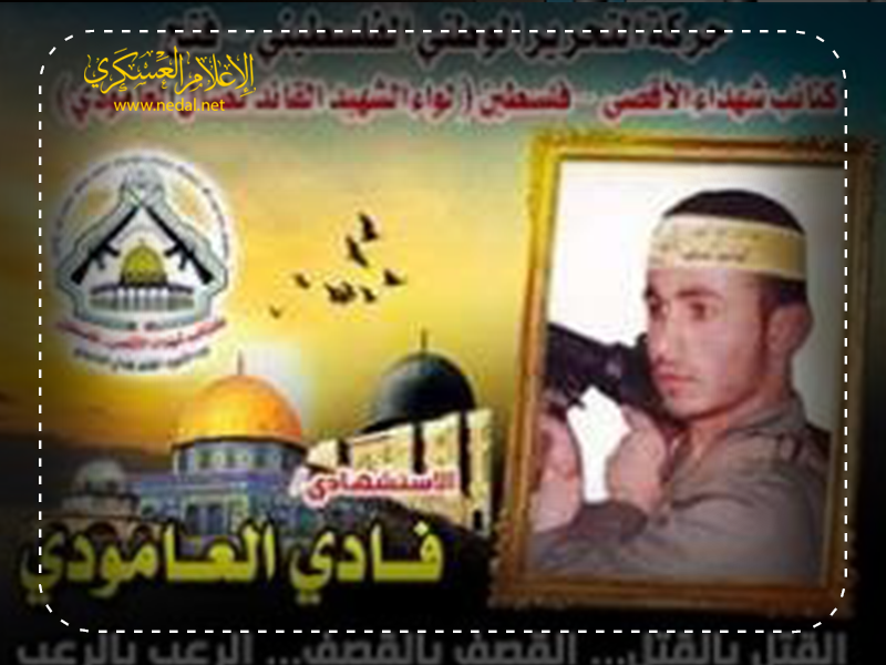فإننا اليوم في كتائب شهداء الأقصى – فلسطين لواء الشهيد القائد " نضال العامودي"، نحيي ذكرى إستشهاد المجاهد الإستشهادى " فادى العامودي"،وإذ ننحنى إجلالاً وإكباراً لروح شهيدنا المجاهد في ذكرى إستشهاده ونعاهد الله أن نبقى الأوفياء لدمائه الطاهرة التي روت أرض القدس المحتلة.