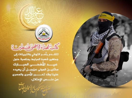 نظمت كتائب شهداء الأقصى_فلسطين اليوم الثلاثاء سلسلة زيارات لأسر الشهداء في كافة القواطع العسكرية لتهنئتهم بمناسبة حلول عيد الأضحى المبارك , و تأكيداً على تمسك الكتائب بنهجهم والسير على خطاهم حتى تحرير كامل التراب الفلسطيني المغتصب