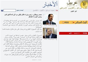 تراجع الموقع الالكتروني لـ صوت اسرائيل باللغة العربية عن نشر خبر يتعلق بلقاء سري بين رئيس الوزراء الاسرائيلي بنيامين نتنياهو ونظيره القطري حمد بن جاسم بن جبر آل ثاني، وذلك بعد قليل على نشر الخبر الذي اشتمل على معلومات خارجة عن السياق لسياسة تحرير الموقع الاسرائيلي إضافة الى نعت نتنياهو برئيس الوزراء الصهيوني.وسارع الموقع إلى اخفاء الخبر الذي تصدر صفحته، والذي جاء فيه أن مصدرا دبلوماسيا رفيع المستوى في العاصمة البريطانية قد أكد أن رئيس وزراء قطر التقى سرا في أحد فنادق لندن برئيس الوزراء الاسرائيلي اثناء تواجده في العاصمة البريطانية، مشيراً إلى أن المسؤول القطري قد وصل على متن طائرة خاصة قادما من باريس. ومما لفت النظر في نص الخبر الذي نشره موقع صوت اسرائيل، ما تضمنه من معلومات تتهم المسؤول القطري بأنه اداة في ايدي اجهزة الأمن الامريكية وله دور في التحريض والعبث، وهذا النص كما ورد ان المسؤول القطري الذي يعتبر عنصرا فاعلا في اجهزة الامن الامريكية وتستند اليه ادوار هامة في التحريض والعبث ببعض الساحات، انتقل فورا وبسرية تامة الى الفندق الذي كان يقيم فيه رئيس الوزراء الصهيوني تحت حراسة مشددة، وأحيط اللقاء بكتمان تام وبعيدا عن وسائل الاعلام وخضعت منطقة اللقاء الى اجراءات أمنية بريطانية مشددة واستمر اللقاء حوالي الساعة. وتابع انه وبعد ساعات قليلة من اللقاء صدر في الدوحة بيان أكد أن قطر ستقوم ببيع الغاز الى الكيان الصهيوني لتعويض النقص في الكميات التي تصلها من مصر.وعاد صوت اسرائيل في وقت لاحق لينشر الخبر مقتضباً وفي موقع أقل أهمية ولكنه هذه المرة قام بنسب تفاصيله الى موقع فارس الايراني.