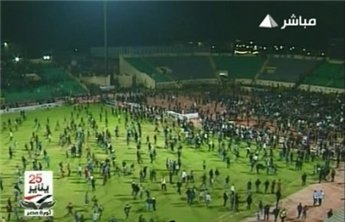 وغزت أعداد كبيرة من المشجعين أرض استاد المصري البورسعيدي بعد نهاية مباراة الفريقين في دوري مصر الممتاز لكرة القدم وحاولوا الاعتداء على لاعبي الأهلي وجهازه الفني وطاردوهم وهم في طريقهم نحو غرف خلع الملابس بعدما تفوق صاحب الأرض 3-1 على حامل اللقب.